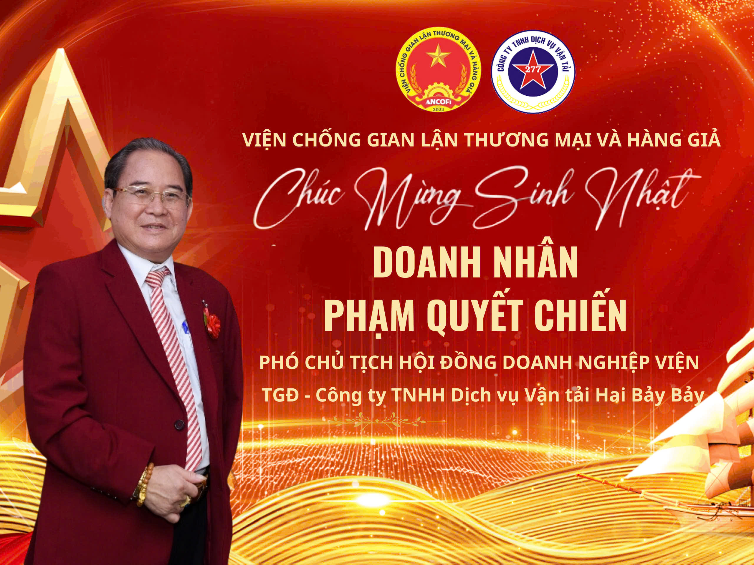 [10/10] Chúc mừng sinh nhật doanh nhân Phạm Quyết Chiến – Phó chủ tịch Hội đồng Doanh nghiệp Viện – Tổng giám đốc công ty TNHH Dịch vụ – Vận tải Hai Bảy Bảy