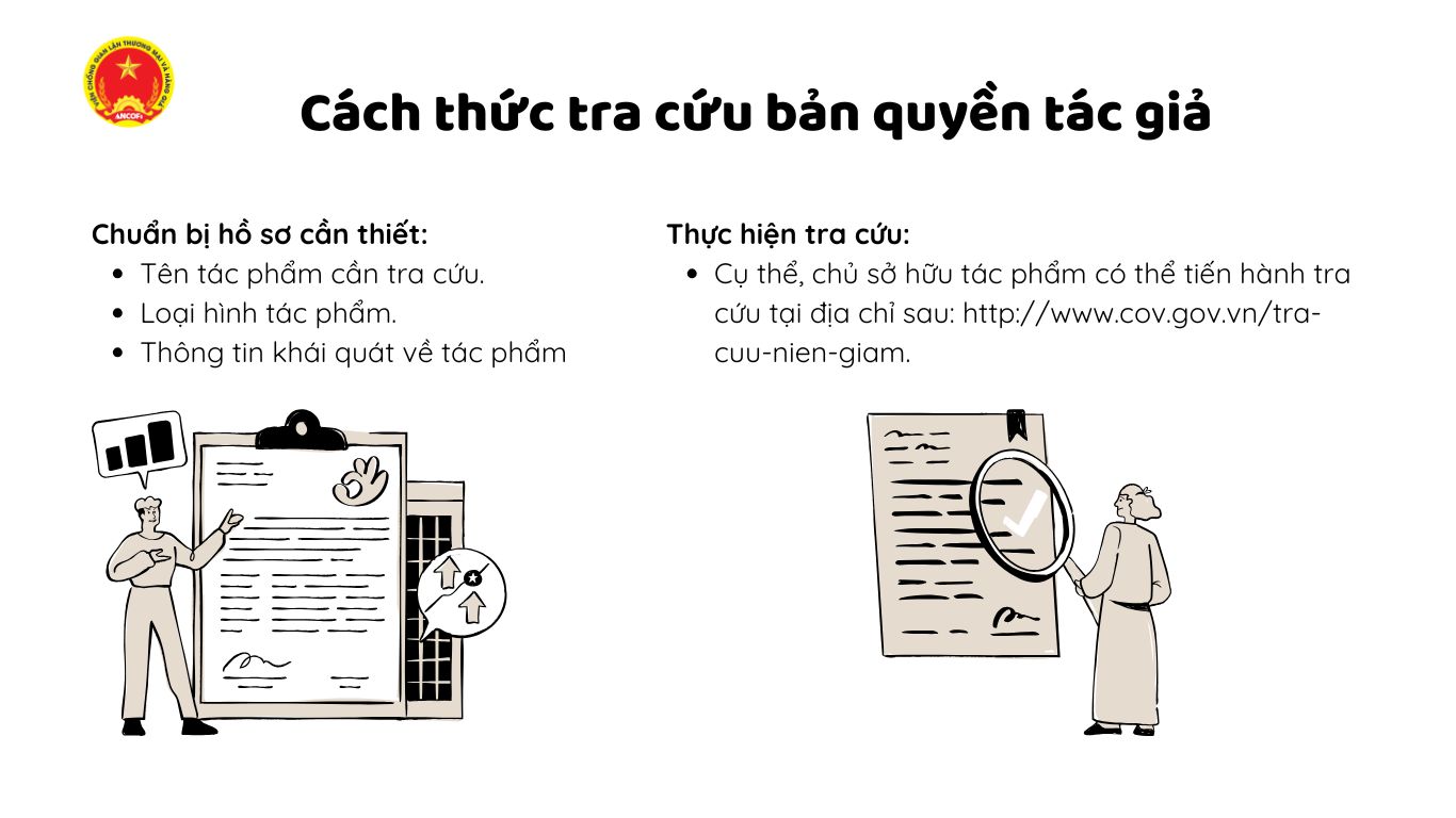 Căn cứ Luật Sở hữu trí tuệ 2005, việc tra cứu bản quyền tác giả được thực hiện trên Hệ thống dữ liệu của Cục bản quyền tác giả. Cụ thể, chủ sở hữu tác phẩm có thể tiến hành tra cứu tại địa chỉ sau: http://www.cov.gov.vn/tra-cuu-nien-giam.